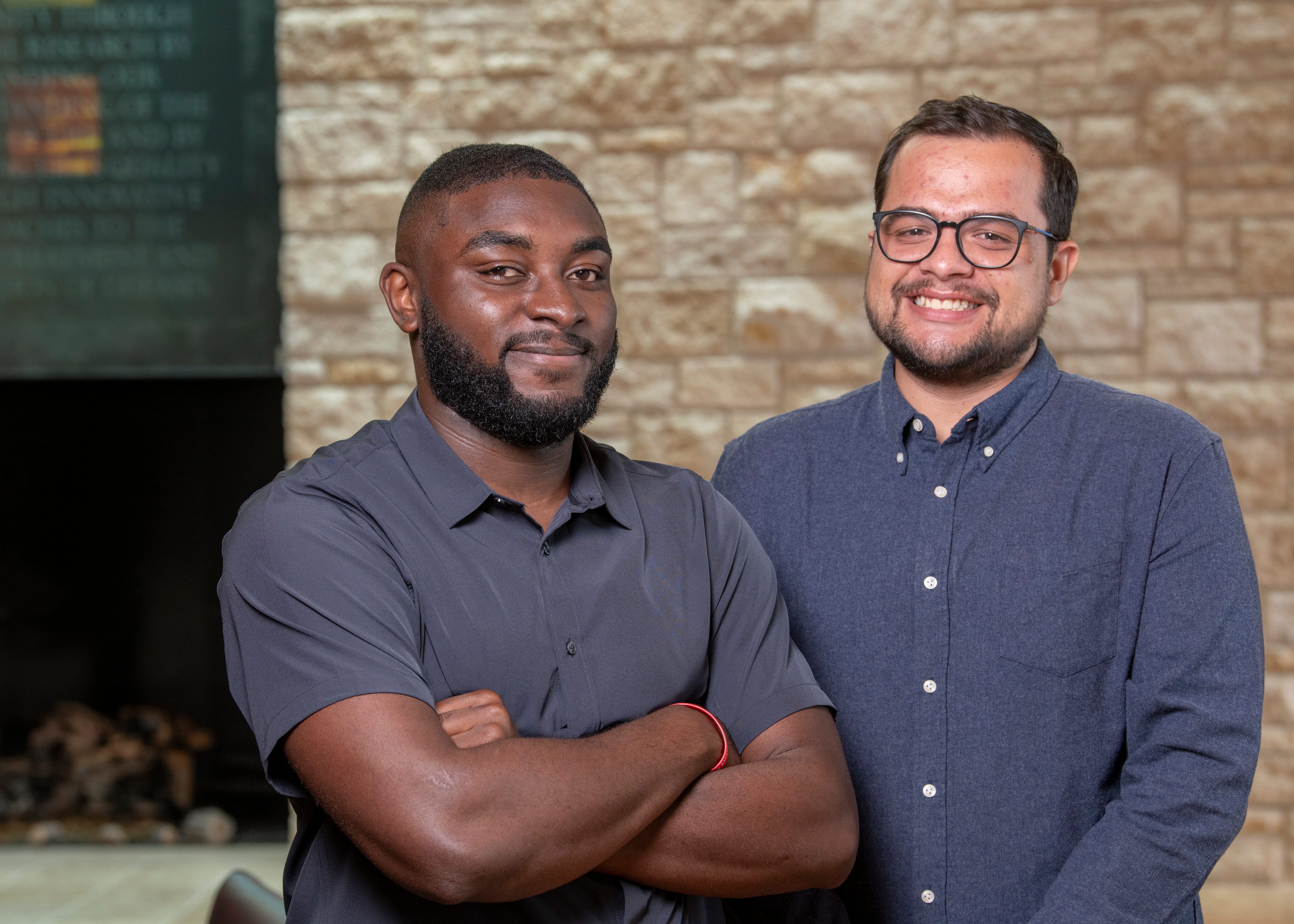 Ojong Tabi Besong (left) and Alejandro Diaz de la Vega Gonzalez (right) joined the Stowers Graduate School as Computational Biology Scholars in 2024.