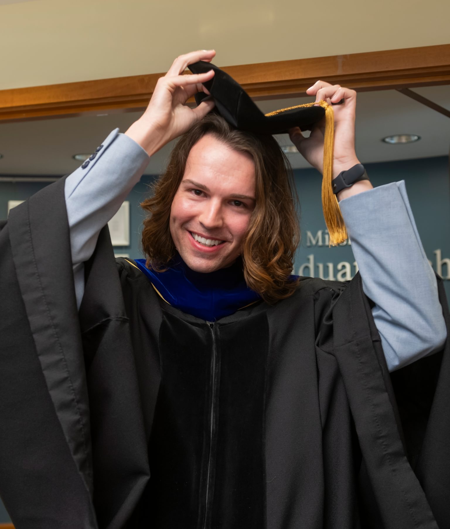 Several members of the 2025 graduating class have already embarked on postdoctoral research positions. Brennan is at Stanford University, Garg is at Case Western Reserve University, and Ortega Granillo holds a joint position with Dresden University of Technology and the Max Planck Institute of Molecular Cell Biology and Genetics. Roy will be joining the Centre for High Impact Neuroscience and Translational Applications in India as a postdoctoral fellow, Kent accepted a faculty position at William Jewell College, and DeVore is exploring positions in the Midwest.