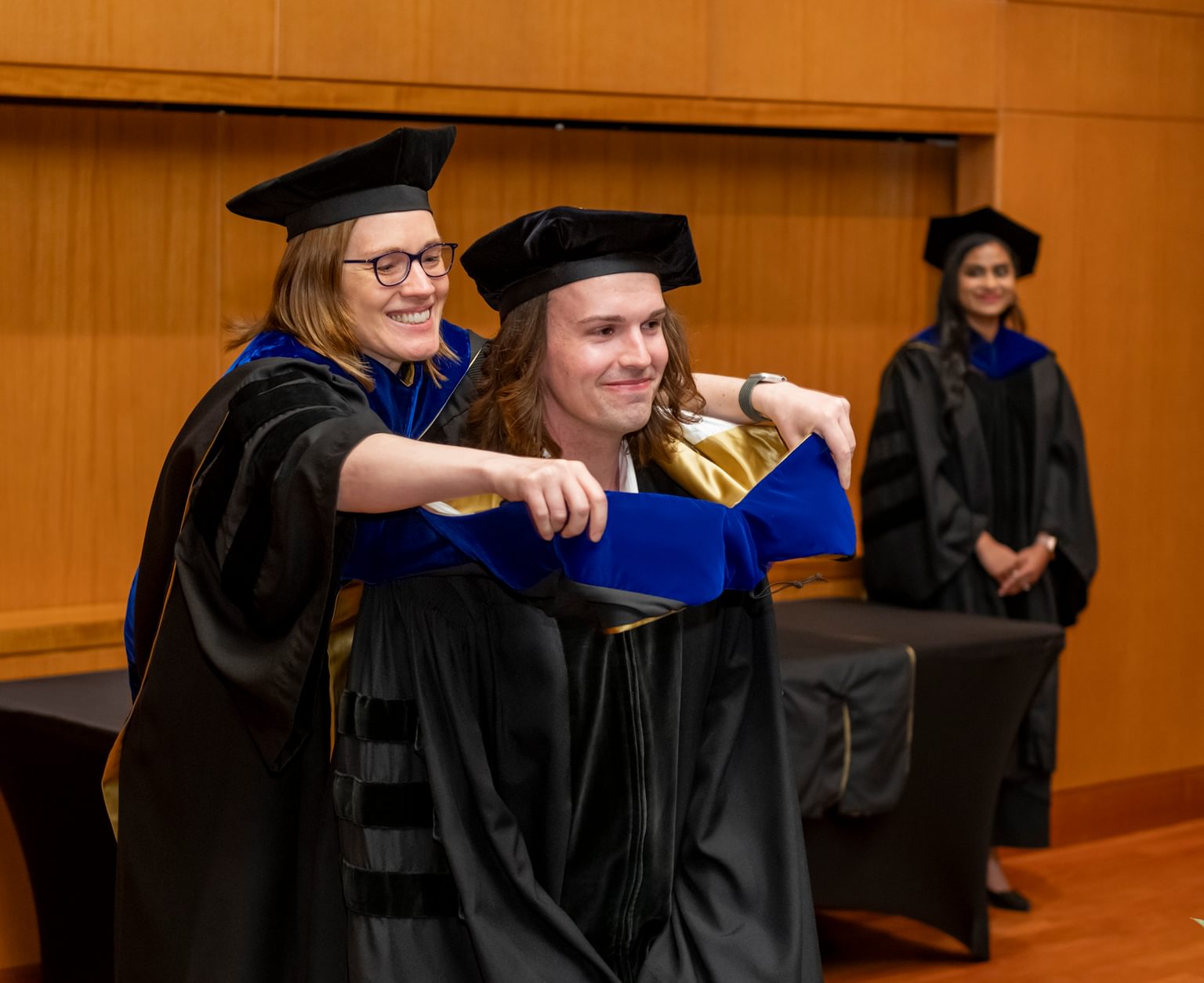 Following the hooding ceremony, Castellano addressed the 2025 class, “This journey has been truly transformative, marked by unforeseen challenges but with a community that has supported us every step of the way.”