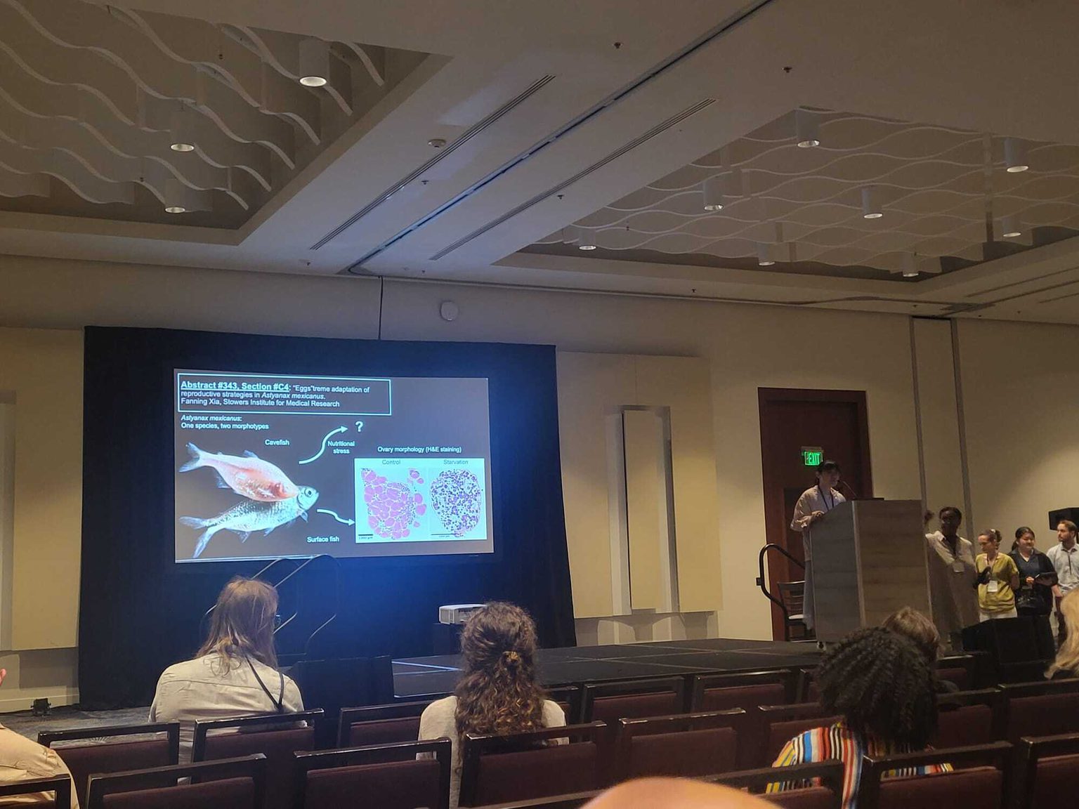 Fanning Xia, a Ph.D. student in the Trainor Lab, presenting at the Society for Developmental Biology Annual Meeting