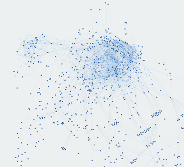 A portion of the structure of an ontology. Each dot is an anatomical term and the lines represent relationships that connect them. Clustering the data visually like this allows researchers to see that highly related items.