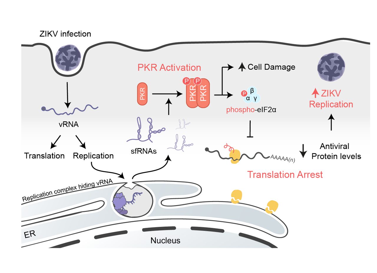 In our study, we investigated how this Zika virus uses small pieces of its genome called sfRNAs to manipulate host cellular processes. Typically, viruses inhibit the host’s antiviral responses to facilitate their replication. However, our findings reveal a unique mechanism by which the Zika virus repurposes an antiviral response to its own advantage by turning it into a proviral response. The implications of our findings are significant. Understanding how the Zika virus repurposes antiviral responses provides new insights into how it causes disease and highlights potential targets for antiviral therapies. By disrupting the production of sfRNAs or downregulating their effects, we could enhance the host's antiviral response and reduce the impact of Zika virus infections, underscoring the importance of studying ZIKV to prevent future outbreaks and develop effective treatments.